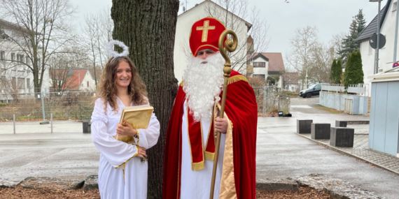 Die Schüler der 1. und 2.Klassen, der Vorbereitungsklasse 1 und der Grundschulförderklasse staunten nicht schlecht, als der Bischof Nikolaus und ein Engel am Freitagvormittag in ihr Klassenzimmer traten. Der Bischof richtete viele freundliche und ein paar mahnende Worte an die Klassen und ließ sich dann Lieder oder Gedichte von den Kindern vortragen. Bald musste er