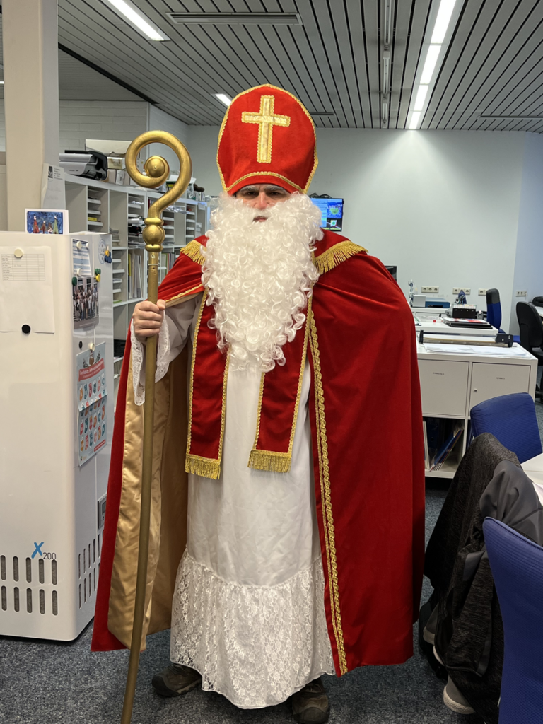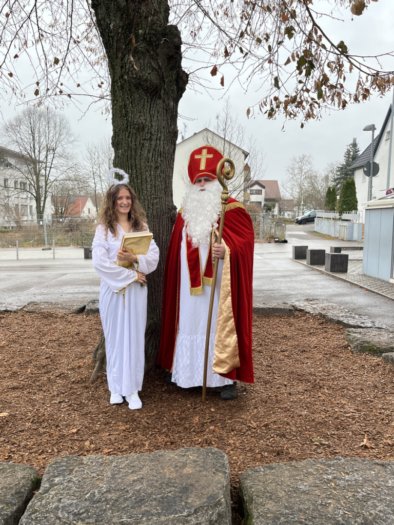 Die Schüler der 1. und 2.Klassen, der Vorbereitungsklasse 1 und der Grundschulförderklasse staunten nicht schlecht, als der Bischof Nikolaus und ein Engel am Freitagvormittag in ihr Klassenzimmer traten. Der Bischof richtete viele freundliche und ein paar mahnende Worte an die Klassen und ließ sich dann Lieder oder Gedichte von den Kindern vortragen. Bald musste er auch schon wieder weiterziehen, da er gemeinsam mit seinem Engel noch so viele Kinder besuchen wollte. Natürlich vergaß er nicht, süße Gaben für jedes Kind dazulassen.